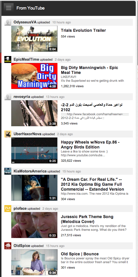 Youtube has always been a simple and faily attractive site not many adds not going over board of color or flasy ads organized to an extent (user error) in genral item on the page are proprely place to understand them. the site is not overly complex simple design when it comes to the new addition to it it can be a little confuseing to what is what. the font is an ok size to understand the main color of the site is red white and a tone of grey. the site maintains the same format throughout it. the length is quite accetpable and is not overgoing long. the site has no sitemap so any navigation to use so I would say it could use one. you can find previouly visited videos the one you liked favioutred ect. the home button is in the same location. hyperlinks are various not all the same. youcan costomize your channel but that is all in the way of costomization. there is a simple and advandced search bar system on youtube